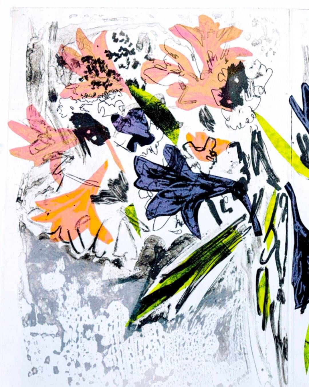 The course will concentrate on the various mark making opportunities using oil based ink on True Grain. How to use the merits of transparent inks to build up rich colour field layers.